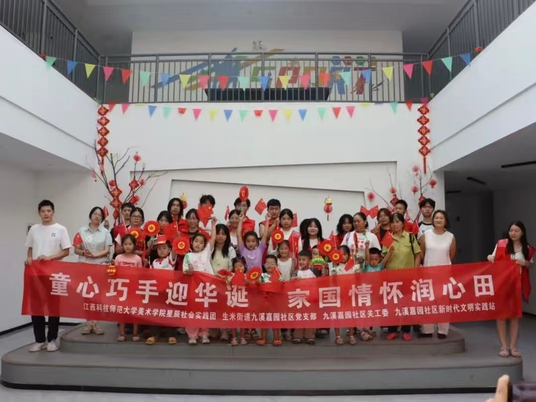为庆祝新中国成立76周年,厚植青少年爱国情怀,推动美育融入社区文化建设,9月27日美术学院“星辰”社会实践团走进九溪嘉园社区,组织开展“童心巧手迎华诞,家国情怀润心田”主题社会实践活动。通过艺术实践的形式,将爱国主义教育融入社区生活,让孩子们在寓教于乐中增强文化自信、滋养家国情怀。