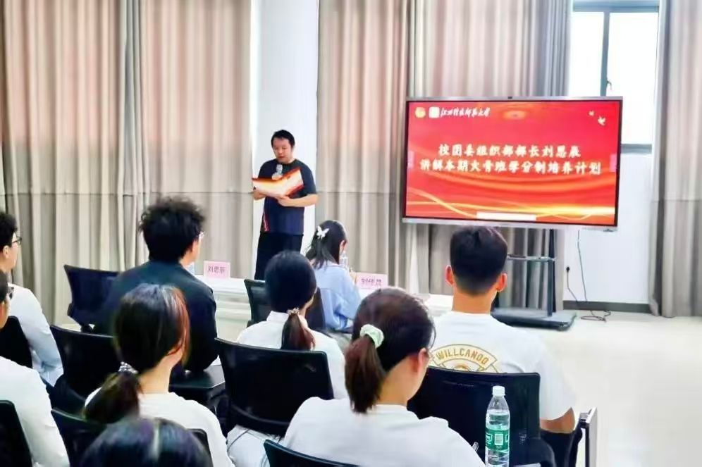 为深入学习贯彻党的二十届三中全会精神,持续为党培养信仰坚定、能力过硬、素养优良的青年马克思主义者,10月14日下午,校团委举办第十七期“青马工程”红五星大学生骨干培训班开班仪式。校团委副书记(挂职)刘佳晨,校团委组织部部长刘思辰出席仪式,第十六期大骨班优秀学员代表刘丹及第十七期全体学员共100余人参加仪式。