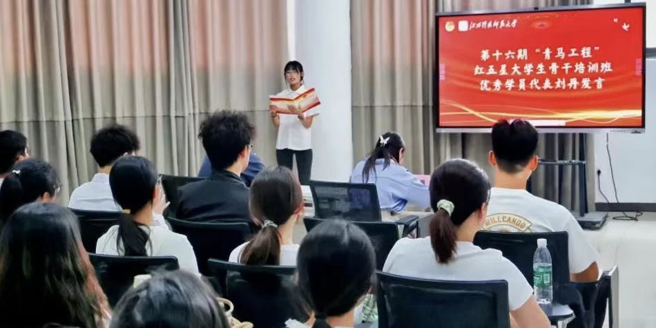 第十六期优秀学员代表刘丹分享了自己过去一年在青马班的收获与感悟,并鼓励新一期学员们要珍惜理论学习,投身社会实践,牢记青年使命。第十七期新学员代表黄璐表示学生骨干肩负着新时代的责任重担,应树立伟大目标、落实骨干称号。在培训期间,她将努力学习理论知识,坚定理想信念,练就过硬本领。