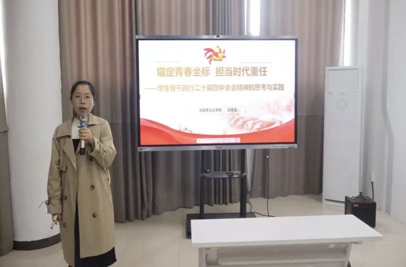 为深入学习宣传贯彻党的二十届四中全会精神,加强青年骨干理论修养与实践能力,11月11日下午,我校大骨班在大学生活动中心115室举行专题授课与学习分享活动。本次活动分为主题授课与学习分享两个环节,马克思主义学院刘家喜老师担任授课主讲,大骨班全体学员120余人参与。