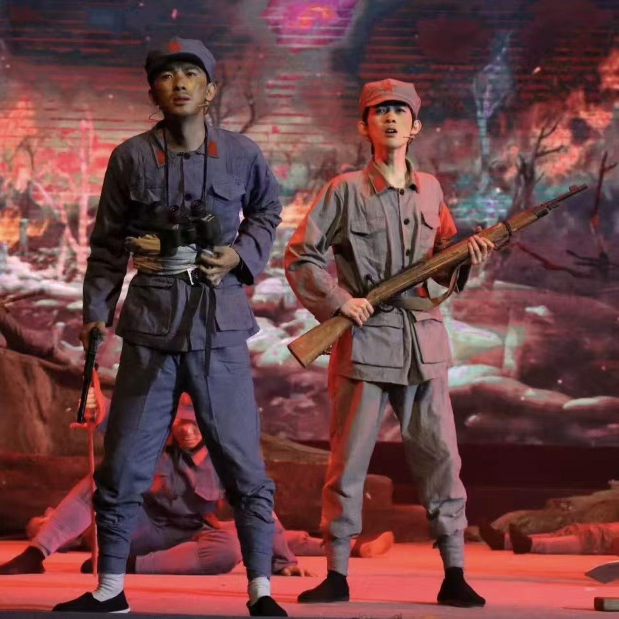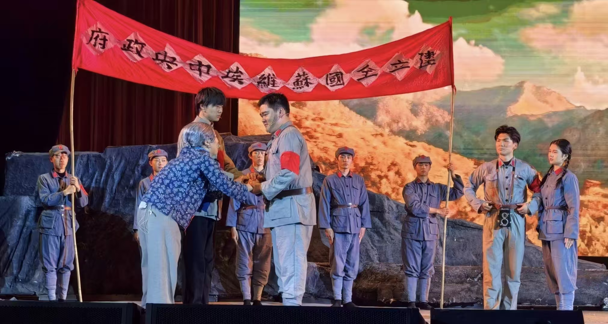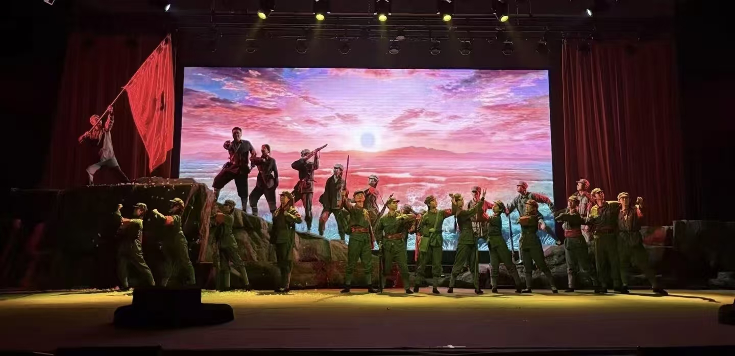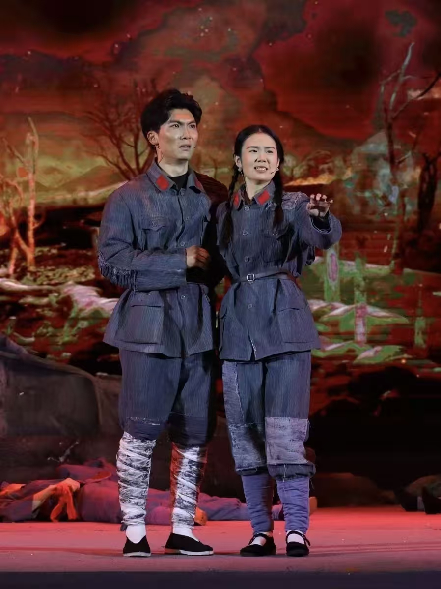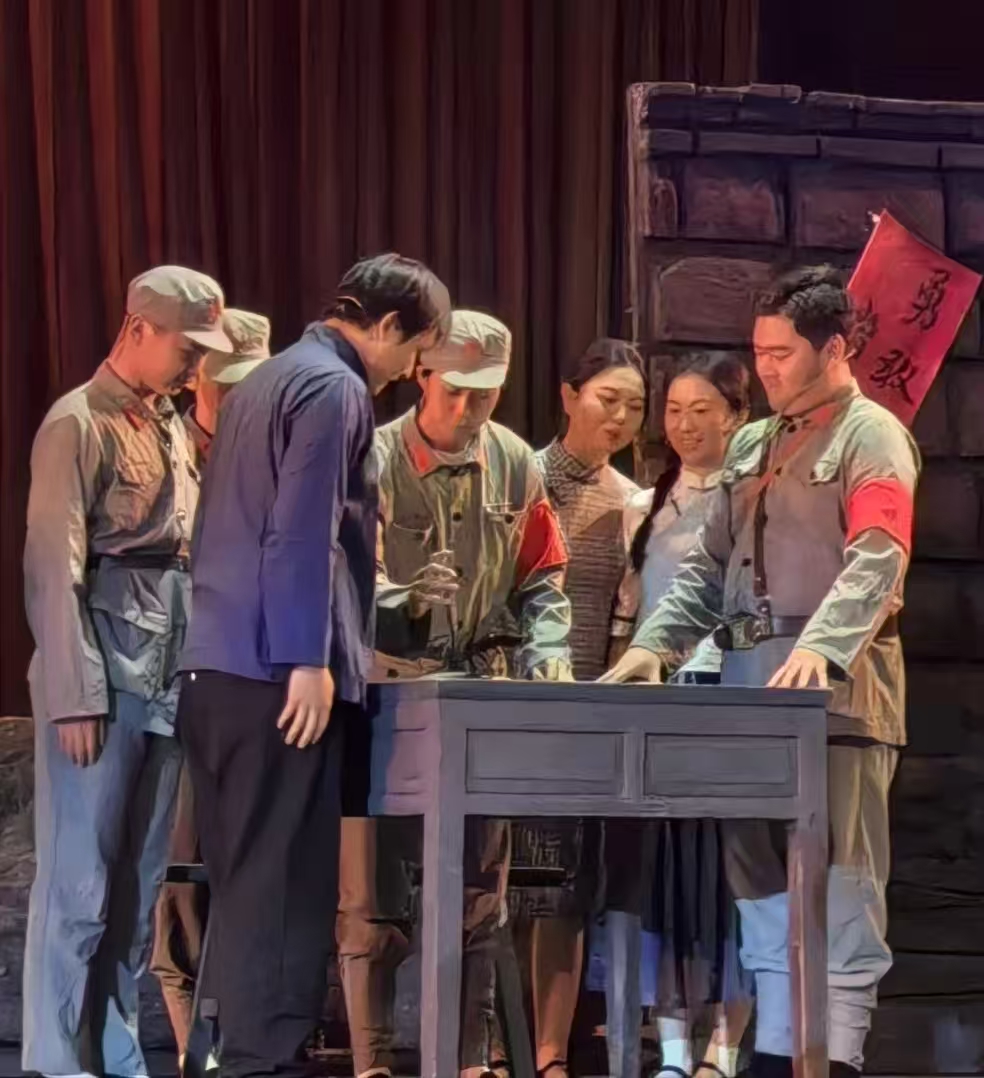 演出现场,演员们以饱满情感与扎实功底,将长征路上的苦难与辉煌、牺牲与坚守演绎得淋漓尽致。于都河畔的青春誓言、湘江血战的悲壮惨烈、遵义会议的转折希望、雪山草地的生死相依、吴起会师的胜利欢歌,一幕幕场景带领观众穿越时空,重回艰苦卓绝的革命年代。当法语版《国际歌》奏响,全场掌声雷动,跨越时空的精神共鸣深深感染每一位观众。