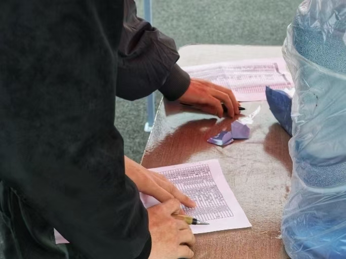 出发前领跑员认真核对路线