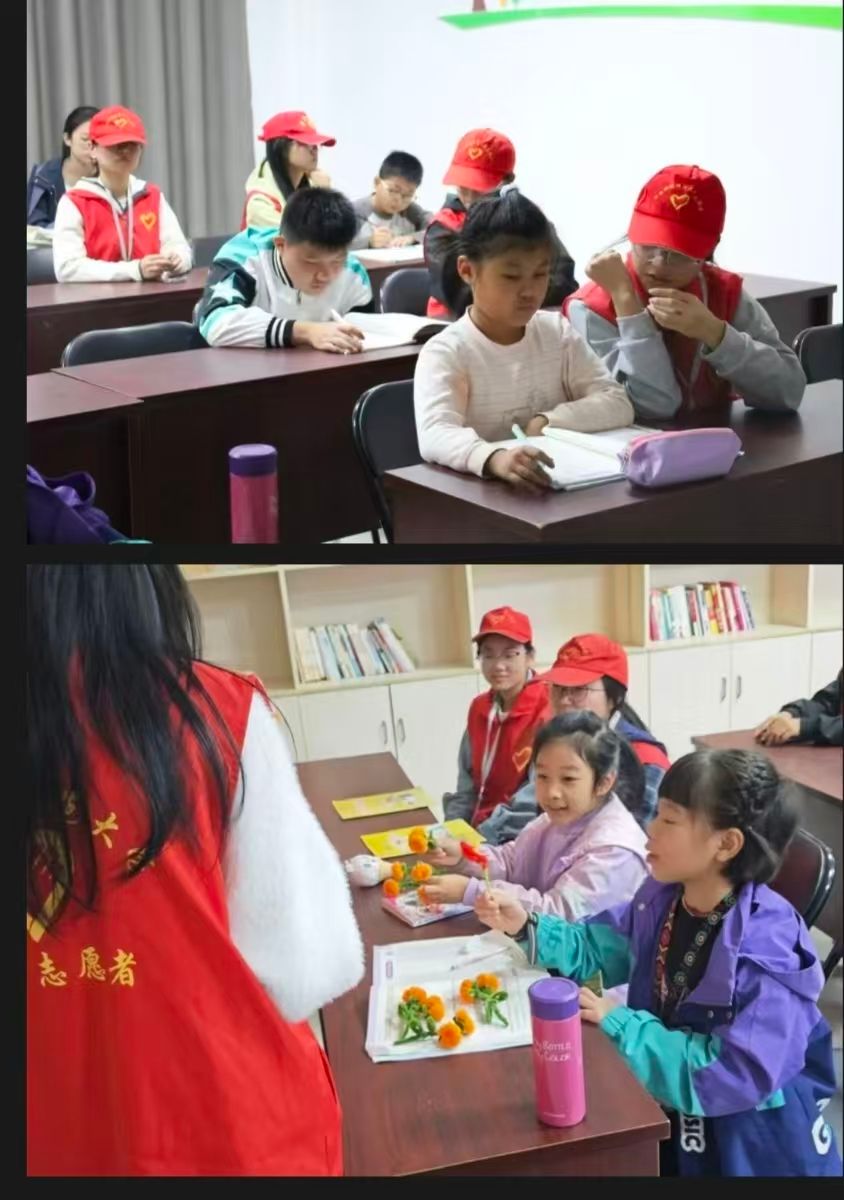 学院的团员青年志愿者们提前筹备,在活动中带领社区孩童一同编织象征吉祥的“柿子”、绚丽的花朵等手工艺品。大家将凝聚着祝福的作品赠予社区长者,并与他们亲切交流,共话家常。一件件精巧的手作,一次次温暖的互动,不仅传递了重阳节的真挚祝福,更编织起校园与社区之间深厚的情谊。