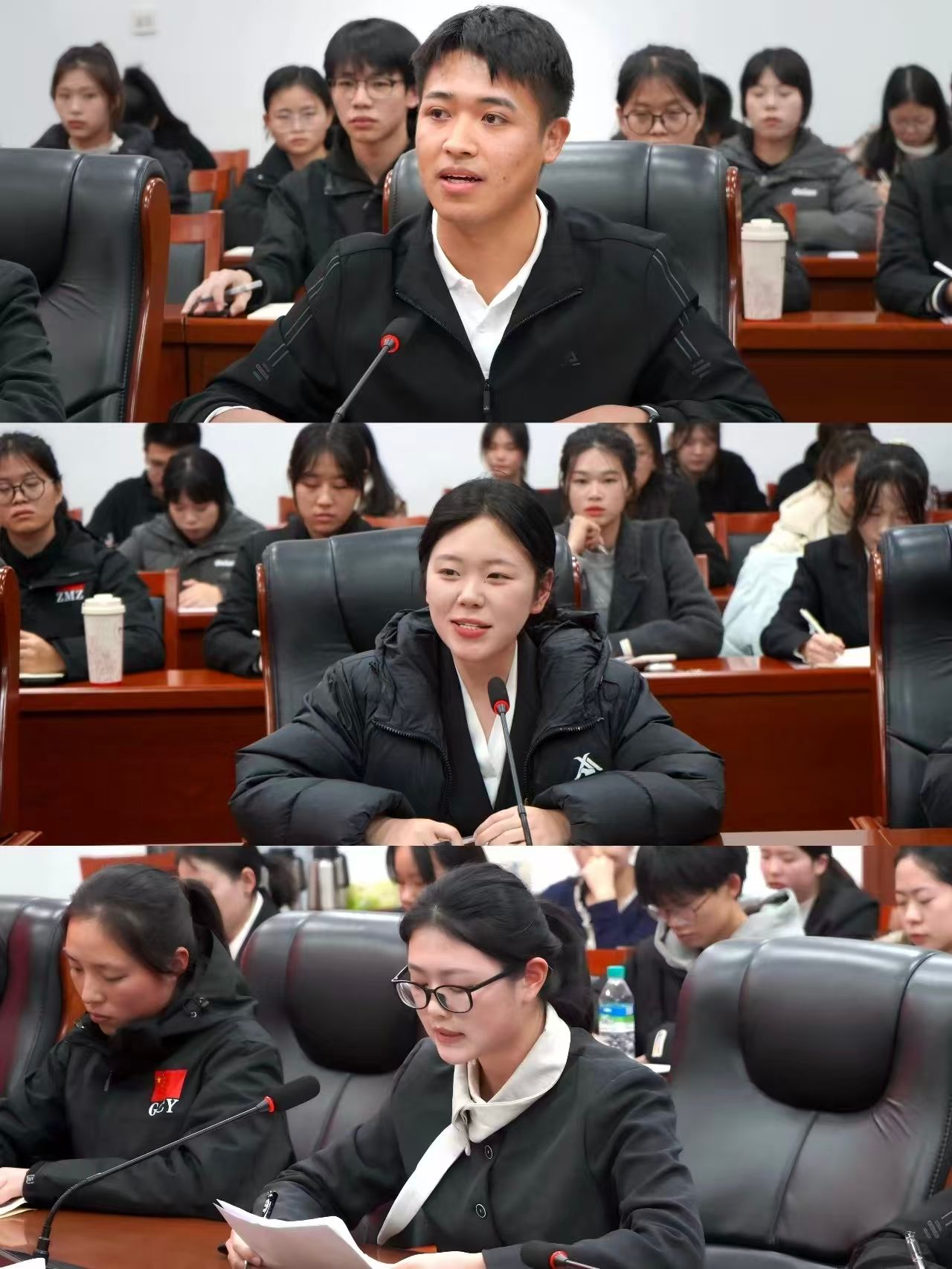 座谈会上,江西省学联驻会执行主席、原校青年志愿者协会会长李沛昱同学结合志愿服务经历,阐释学生工作“用真心换真心、用行动传递温度”的内涵;校学生会执行主席朱昕媛同学围绕筹备学代会、暑期“三下乡”社会实践,分享“专业精神融入服务、细节之处践行责任”的心得;校学生社团服务中心主席团候选人程康逸同学从组织社团活动和参与全省“微团课”大赛的体验出发,畅谈团队协作与自我挑战的成长感悟。