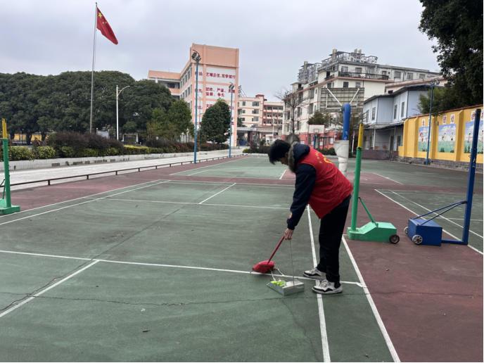 图为施炫羽同学投身体育学院后勤服务工作