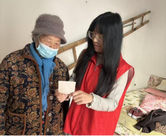 图为张雨芯同学走访桓台县独居老人