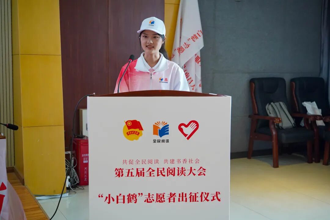 仪式上,来自三所高校的志愿者代表武亚楠、欧阳葵、周裔宏依次发言,纷纷表示将以饱满的精神状态、严谨的工作态度和专业的服务素养,全力护航全民阅读大会顺利举办。
