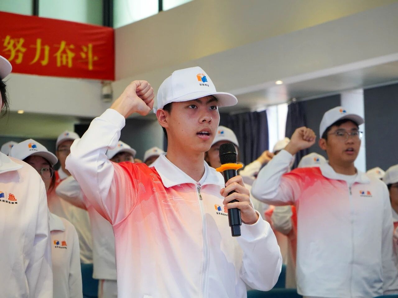 仪式在雄壮的国歌声中拉开帷幕。万琪介绍志愿服务队组建背景及整体工作部署,熊成军、戴婧、周晏悦为志愿服务队郑重授旗,鲜红的志愿旗帜承载使命、传递担当。全体志愿者庄严宣誓,誓词铿锵有力、振奋人心,彰显新时代青年志愿者服务盛会、无私奉献的坚定理想与责任担当。