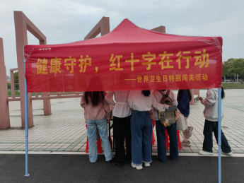 为迎接4月7日世界卫生日,普及健康知识与应急救护技能,弘扬红十字“人道、博爱、奉献”精神,4月7日,由共青团江西科技师范大学委员会主办、校红十字会承办的“健康守护,红十字在行动”世界卫生日特别闯关活动,在红角洲校区西区食堂屏幕处顺利开展,全校学生积极参与,现场氛围热烈。